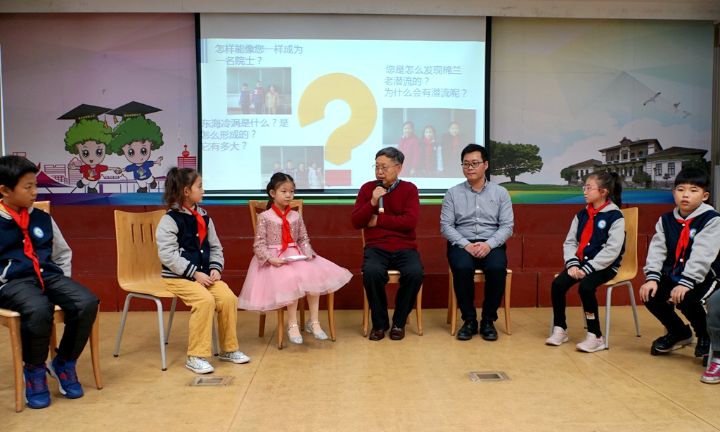 12月7日,海洋所胡敦欣院士、海洋所青促会会长胡石建研究员应邀赴青岛市实验小学开展海洋科普活动,市实验小学校长梁景萱、副校长胡繁华及百余名师生现场参与活动。