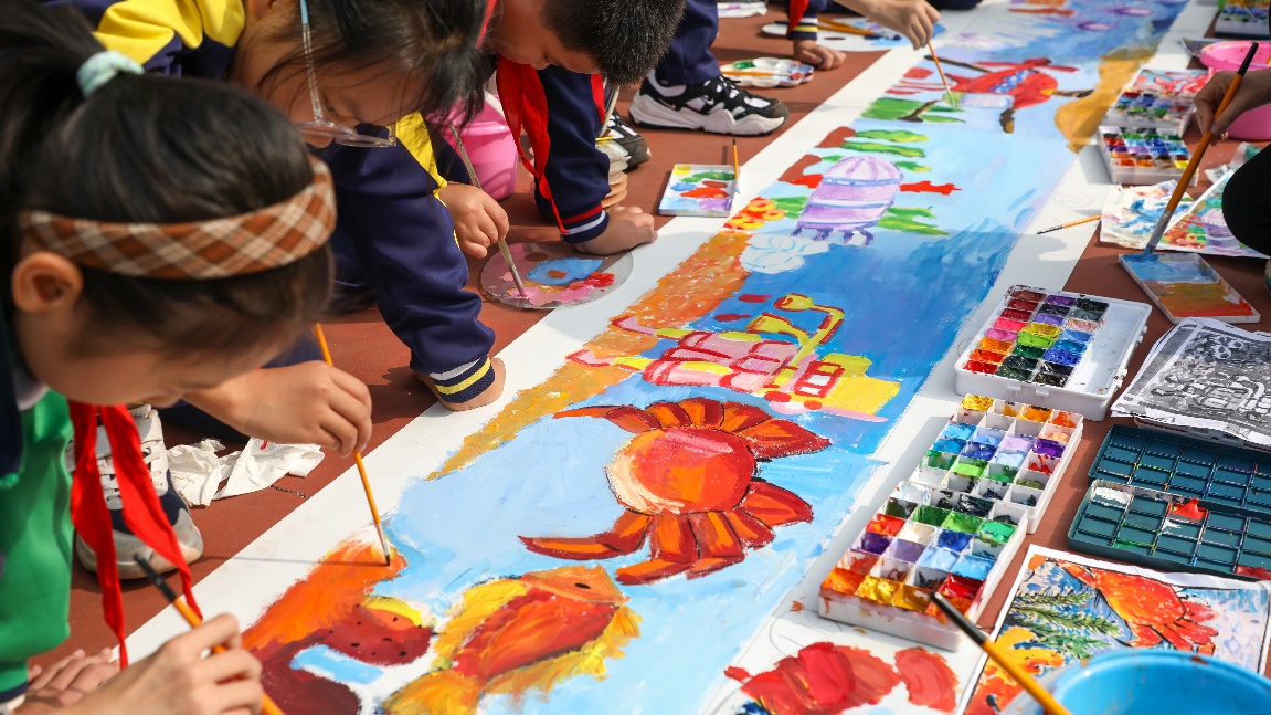 本次活动由青岛市教育局、青岛市科技局、中国科学院海洋研究所联合主办,青岛市少年科学院、青岛中科海印像科技文化有限公司、“耕海探洋”科技科普示范基地共同承办,来自岛城各区市的120余名中小学生在百米长卷上现场作画,共绘心目中的蓝色海洋。