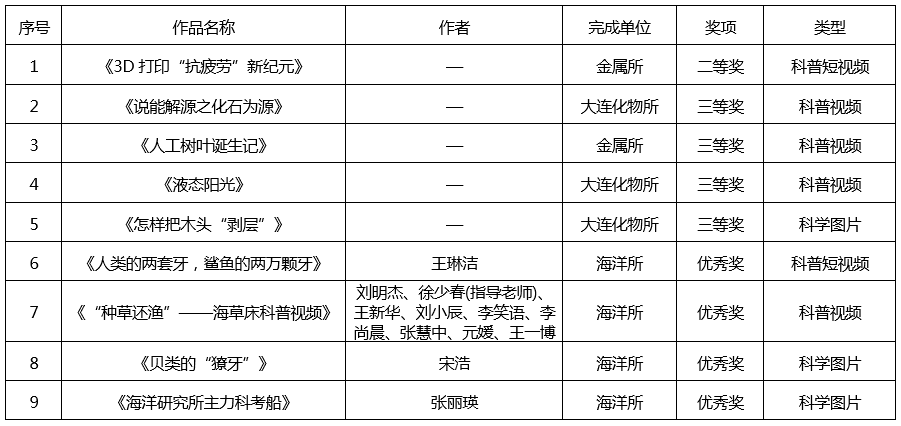 2024年中国科学院科普视频图片大赛沈阳分院系统获奖名单