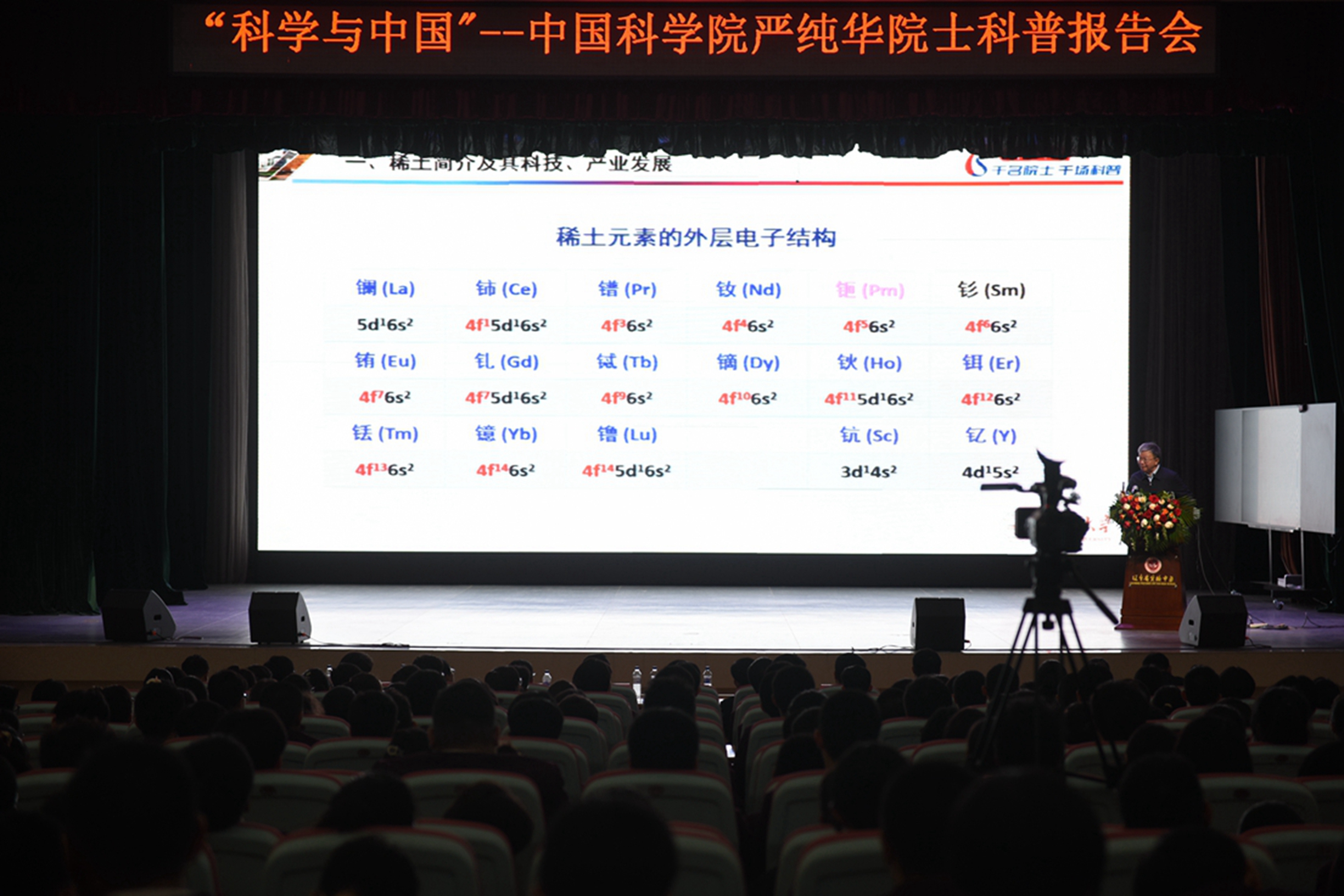 “镧系元素以及同族的钪、钇等共计17种元素又被称为稀土元素。”严纯华从稀土的元素组成、在元素周期表上的位置入手,向同学们介绍何为稀土。系统讲解了稀土元素的基础特性,在新能源、电子信息、国防工业等领域的战略价值,以及我国稀土科技发展的成就与挑战。报告通过生动的案例,向师生们展示了稀土元素在火箭卫星制造、电动汽车、风力发电、电脑和智能手机等领域中的具体应用,使大家切身感受到稀土科技对现代生活的重要影响。报告会上,严纯华还简要介绍了中国科学院大学、兰州大学本科教育教学和人才培养情况,鼓励学生们志存高远、心存感恩、全面发展、早日成才。