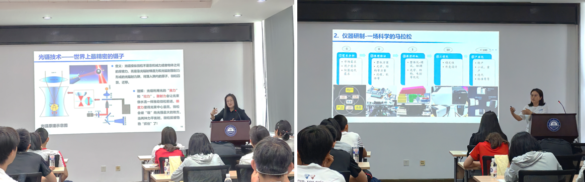 高级工程师郑晓姗以《你相信光吗?——从生活现象走向诺贝尔物理学奖》为题,从“天空为什么是蓝色”这一日常问题出发,引导学生进入光的科学世界。她深入讲解了两项与光密切相关、荣获诺贝尔物理学奖的重要技术:拉曼散射效应、光镊技术,它们分别在光与物质相互作用的研究以及光的操控能力方面取得了突破性进展。通过生动比喻和丰富案例,郑晓姗向学生们展示了光如何帮助我们“听懂物质的秘密”,也启发大家对基础科学研究的兴趣。