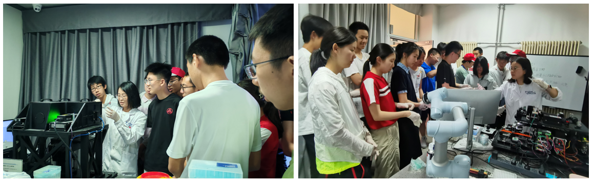 实践操作环节则进一步激发了学生们的参与热情。在科研人员指导下,学生们分组体验了两项光学主题实验:一是《基于拉曼光谱的粉末识别》,通过对比不同样品的光谱特征,实现“长得像但本质不同”物质的识别,理解分子“光谱指纹”的概念;二是《基于光的单细胞/克隆筛选》,依托光致气泡原理在DCP平台上完成单细胞/克隆识别与分选,感受智能生物仪器的操作流程与工程逻辑。