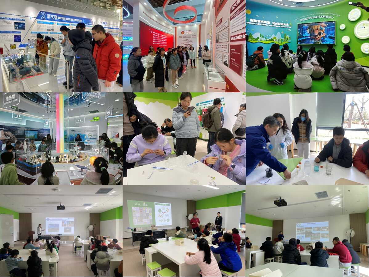 活动中,家属们在工作人员引导下,首先参观了所展厅和科学家精神教育基地,通过了解研究所发展历程、聆听科学家故事,对家人所从事的科研工作有了初步认识。随后,家属们走进本次活动的重点体验场所——清洁能源与绿碳技术科普中心,近距离接触各类科研展品与互动演示装置,在沉浸式体验中感受绿色能源与低碳技术的独特魅力。参观体验结束后,根据三个学龄段的认知特点,分别设计了差异化的科普课程与动手实验环节。海洋碳汇与能源微生物研究组硕士研究生滕培晨为低年级组带来《守护蓝色星球家园:了解并应对二氧化碳的挑战》,一碳生物技术研究中心范勇副研究员为高年级组讲授《带着微藻去火星》,系统集成工程中心木质纤维绿碳材料项目部李滨研究员面向初中组讲授了《植物纤维——源于自然的万能零碳资源》。授课老师结合自身研究领域,用通俗易懂的语言讲解科学原理,并带领孩子们动手参与实验操作,在实践中激发探索兴趣。