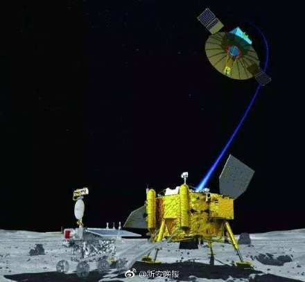 浩瀚的太空及登陆月球的嫦娥四号探测器(图片来源自16素材网、新安晚报)