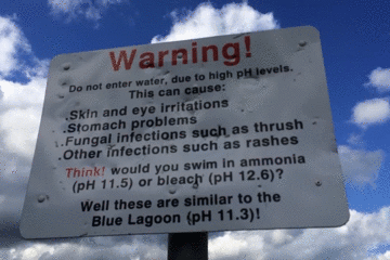 但这个蓝礁之湖也是个「毒湖」,它的前身是个采石场,湖中堆积着垃圾废物,包括汽车废弃零件、动物尸体和各种垃圾,而湖水的ph值高达11.3,对人体皮肤、内脏都会造成伤害.