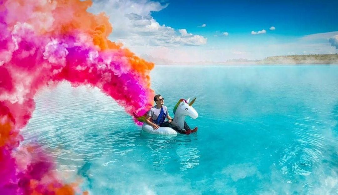 这个湖会火起来少不了网红的助力,外国社交网络Instagram上有特别多网红推荐,由此引来一波又一波游客前去打卡合照。有特意带上各种戏水工具的朋友: