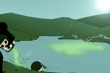尼姆湖同样也是人工湖,二战时期湖边有个钨矿,这湖自从1980年代左右就开始废弃搁置了,湖水里堆积了大量的化学废料。