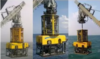 “海星6000”ROV是沈阳自动化所最新研制的ROV产品。它是一种无中继模式的ROV。ROV本体通过脐带缆直接与母船相连接,脐带缆起着物理连接、能源供给与信息传输等作用;“海星6000”全系统主要由ROV载体系统、控制系统、动力与辅助系统、水面收放系统深海升降运载平台等组成。