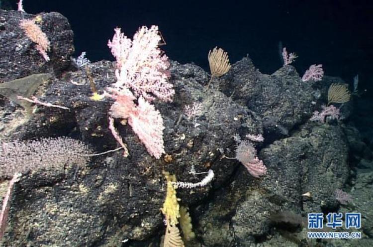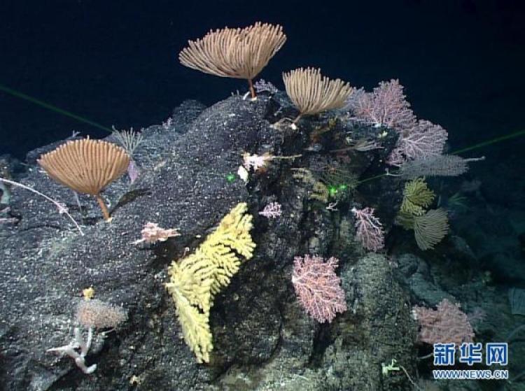 新华社“科学”号5月28日电(记者张旭东)中国远洋综合科考船“科学”号科考队员28日在马里亚纳海沟南侧海山发现了近10片五彩斑斓的珊瑚林。林内各种珊瑚和柱星螅等集聚生长,犹如“海底花园”一般,实属罕见。