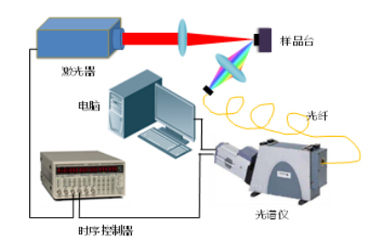 激光器产生激光束,经过透镜汇聚之后,在样品表面就可以激发出等离子体。通过透镜对产生的等离子体发射光谱信号耦合到光纤,并通过光纤将等离子体发射信号传输给光谱仪,光谱仪将采集的光谱数据传输给电脑进行处理。此外,由于所产生的等离子体生命周期短,一般是几十纳秒到几十微秒,因此,需要采用时序控制器来控制激光器与光谱仪触发及采集上同步。