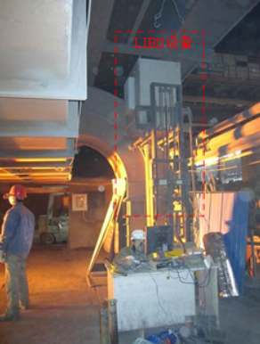 首先,它可以完成金属成分的在线分析检测。早在2014年,中国科学院沈阳自动化研究所孙兰香团队成功实现了LIBS在炼钢厂的示范应用,并在国际上首次实现了40吨级钢包的钢水成分的在线测量,现场设备如图所示。