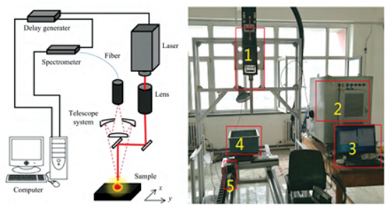 水泥成分检测LIBS分析系统(1、激光器及光学系统;2、控制柜;3、计算机;4、料盒;5、二维电动平移台