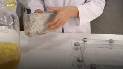 简单来说,就是科学家们把尿液、一种特殊细菌和沙子放在同一个模具中。细菌和尿液结合会产生化学反应,分解出碳酸钙,也就是所谓的石灰石。