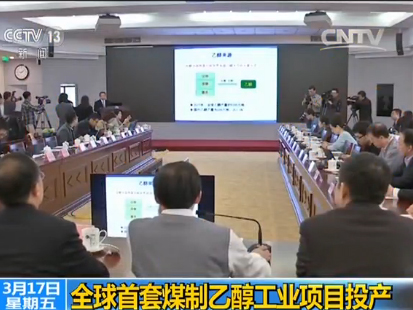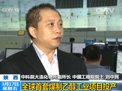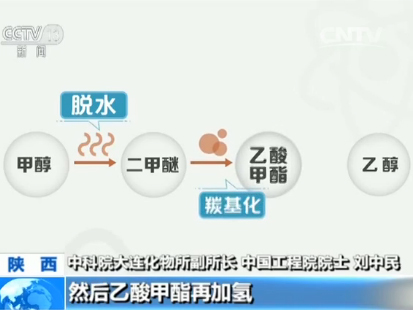 中科院大连化物所副所长 中国工程院院士 刘中民:我们这个技术路线是通过煤先做成甲醇,再接着转化成乙醇。它的技术核心实际上是,把甲醇、把二甲醚和一氧化碳反应做成乙酸甲酯,然后乙酸甲酯再加氢变成乙醇和甲醇,最核心的还是两个过程的催化剂。这个催化剂要求高效,长期稳定。原来世界上没有过类似的。