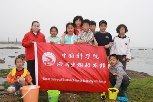 5月29日,为庆?!傲弧惫识?,中国科学院海洋研究所标本馆联合八大关社区组织武胜关路小学生“梦想之舟”科技小组进行了一次丰富多彩的“海藻标本的采集及制作”科技活动。来自嘉峪关学校、宁夏路小学、文登路小学的11名学生在标本馆王永强、孙北林的指导下,从青岛太平湾海区进行亲手采集并制作了100余号海藻标本。