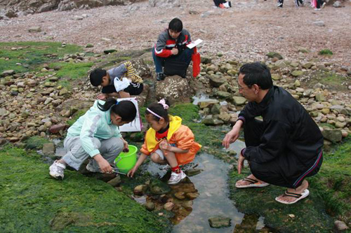 同学们个个兴致勃勃,欢快地搜寻着不同种类的海藻,并不时地向王老师询问自己所采标本是否完整以及名称,每一次采到新种,同学们欢呼雀跃,庆祝自己的收获。1个小时的时间很快就过去了,因涨潮,同学们不得不停止了采集工作,恋恋不舍离开海边。