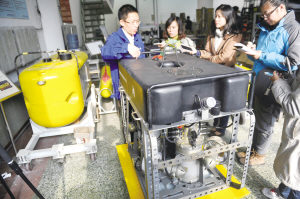 工作人员介绍新型冰下海洋环境监测系统 ■华商晨报 华商响网记者 张诗尧 摄