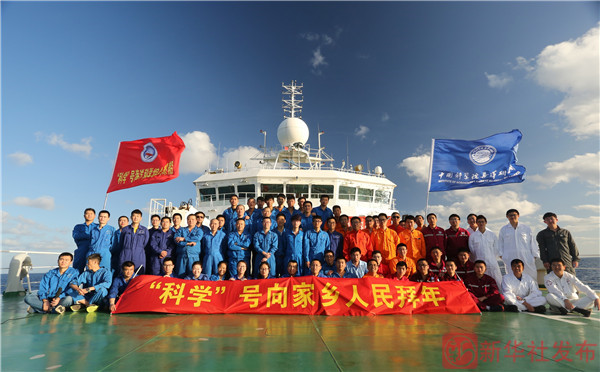 至今,“科学”号驶离祖国已超过80天,航程已逾两万公里,相当于沿赤道环绕了半个地球,克服了气象、装备等诸多困难,战风斗浪、披星戴月,使命在肩、苦中有乐。