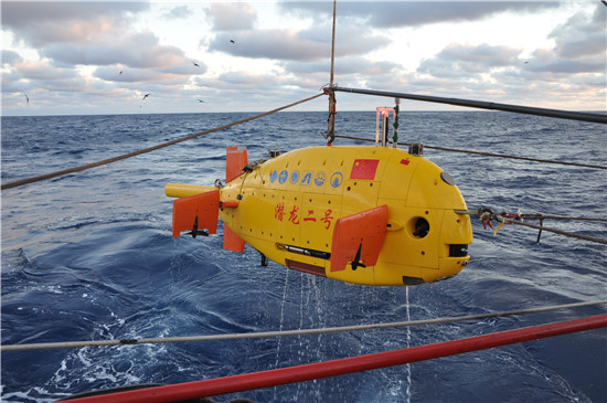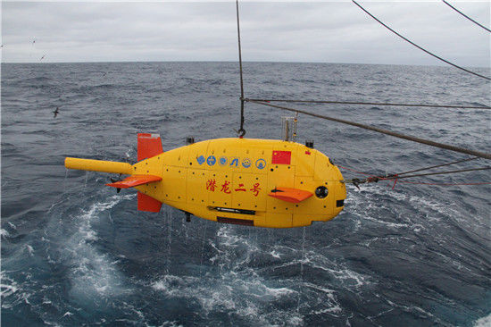西南印度洋海上试验再次验证了“潜龙二号”的多项关键技术:首次采用全新非回转体立扁形设计和推进器布局,增强了潜水器的机动性能,实现了复杂海底地形下的稳定航行和路径跟踪能力;首次采用基于前视声纳的避碰控制方法,大大提高了障碍物的有效识别能力,实现了复杂海底地形条件下的有效避碰控制;国内首次在AUV上安装了磁力探测传感器,解决了对磁辐射设备的屏蔽和磁探测数据的校正及处理难题,实现了近海底高精度磁力探测;采用测深侧扫声纳水下实时信号处理技术,实现了深海近海底高精细地形地貌快速成图。研制深远海自主水下机器人,对提升我国深远海资源开发的国际竞争能力,提高我国深远海资源开发利用规模与水平,具有国家战略意义?!扒绷拧蔽髂嫌《妊蟮氖匝樾杂τ贸晒Γ畈沽宋夜詈A蚧锶纫呵灾魈讲饧际踝氨傅目瞻?,必将为我国大洋深海资源调查做出更大的贡献。