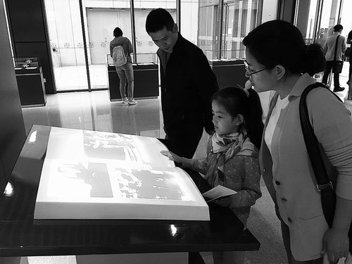 “魔镜魔镜,谁是世界上最漂亮的人?”大厅里,一个小姑娘在父亲的陪同下向“魔镜”发问。