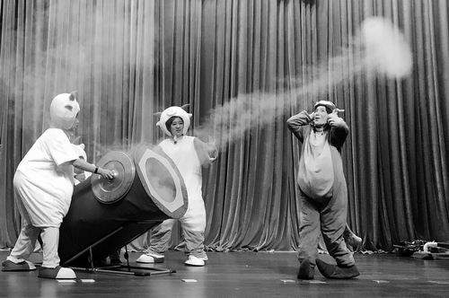 ▲物理所上演大型科学秀,喜羊羊的“空气炮”赶跑了灰太狼。丁佳摄