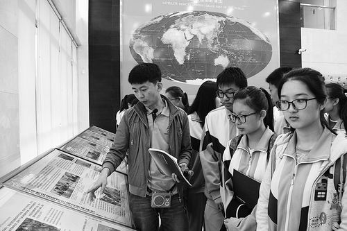 ▲参观数学院的小学生对数学家的故事产生了浓厚兴趣。陆琦摄