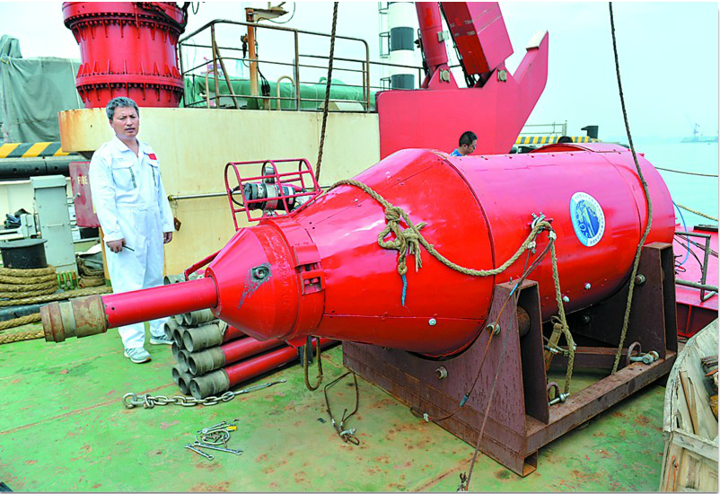 还有深海热流探针,相当于一支巨大的“海底温度计”,能够同时测出沉积物的温度梯度,准确率达到0.001度;原位过滤系统可以从几千升海水中过滤出1克的样品膜;固体保温保压取样装置能够将可燃冰从海底带回船舱,温度最多有两三度的变化……
