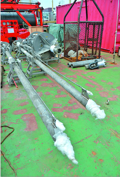 两台深水可视化轻型柱状取样系统,主要用来做沉积物取样,“这套装置目前国际上也只有咱们拥有,对研究古海洋地质特别有用?!辫镎穸担馓咨璞改芸吹胶5壮粱锏淖刺?,包括收集高度、姿态、方位和倾角等重要数据。