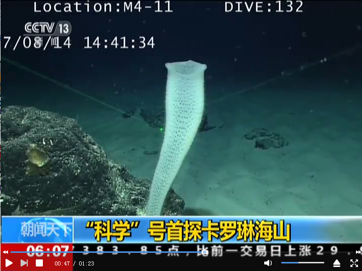 正在执行中科院海洋先导专项的新一代科考船“科学”号在抵达西太平洋卡罗琳海山之后,通过搭载的“发现”号潜器在这一海域进行了下潜作业,这也是人类首次对卡罗琳海山进行科学考察。