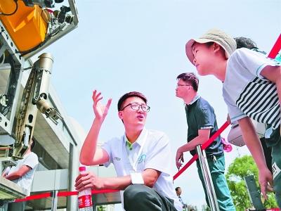 5月19日上午,2018年中国科学院在沈科研机构公众科学日活动在中科院沈阳自动化所启动。曾担任重要科考任务的“潜龙三号”、深??瓶夹蚏OV系统两款水下机器人,首次与社会公众见面。光明日报记者 刘勇摄/光明图片