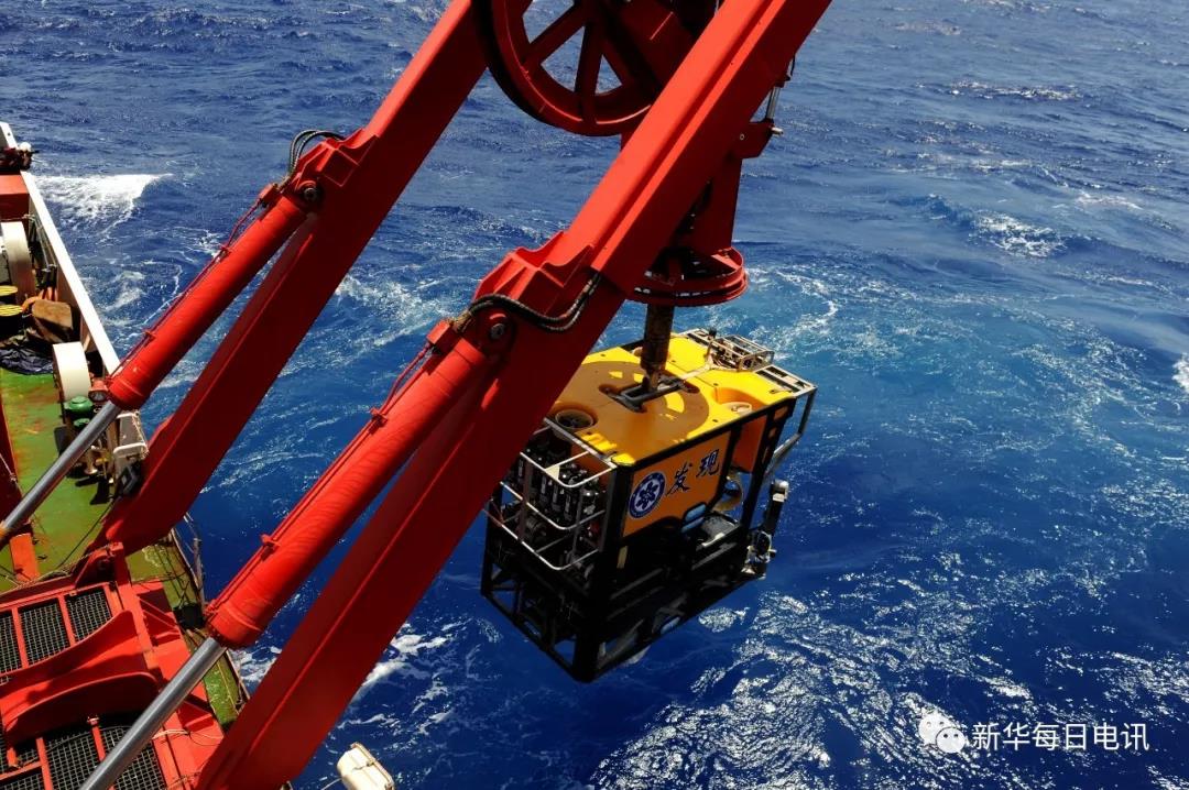 在2015年一次考察中,“发现”号ROV经过近一天的海底作业,准备回收之际,天气突变,海面上狂风大作、大雨倾盆,风浪越来越大。为了安全,技术人员果断决定暂不回收,让“发现”号在海底“趴了”24个小时,等天气好转后才收回来。
