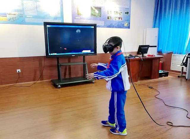 (小学生在体验VR)