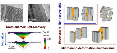 图1 大熊猫牙釉质微纳米尺度组织结构及其自修复效应与微观机制