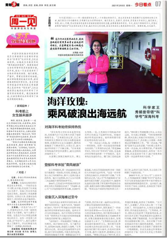 从读博士到现在做研究员、博士生导师,一晃,王秀娟在中科院海洋研究所已经度过了近20年时间,但她对海洋科考这份事业,始终保持着年轻时的那份热忱与好奇。