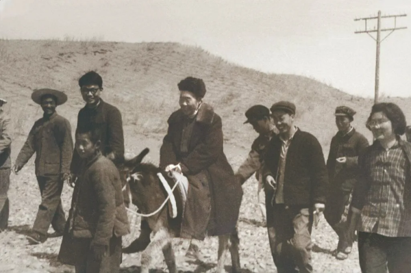 1964年,刘慎谔骑着毛驴在西北检查治沙试验工作。