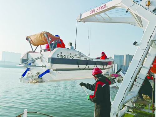 “科学”号工作艇正在进行测试。廖洋/摄