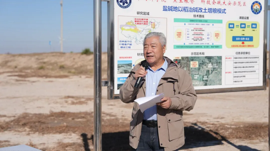 “黑土粮仓”科技会战大安盐碱地万亩核心示范区位于吉林省大安市红岗子乡万发村,该区域以中重度盐碱地为主,重者颗粒无收。梁正伟团队在万亩示范区酸碱值为10.3的重度盐碱地连续5年(2021—2025年)示范推广“三良一体化”大安模式。
