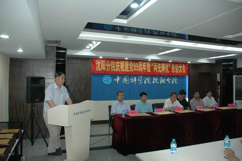 在各基层党组织和广大党员群众评选推荐的基础上,沈阳分院直属机关党委经过认真研究,于6月24日作出决定,授予11个党总支和党支部为2009年至2010年度先进党总支、先进党支部;授予5个党小组为2009年至2010年度先进党小组;授予20名党员同志为2009年至2010年度优秀共产党员;授予6名党员同志为2009年至2010年度优秀党务工作者,并于2010年6月28日召开了“纪念建党89周年暨‘两先两优’表彰大会”为受到表彰的先进集体和先进个人颁奖。沈阳分院党组书记、沈阳分院直属机关党委书记马思同志在会上就加强新时期基层党组织建设,深入开展创先争优活动,为建设改革创新和谐奋进的中国科学院贡献力量发表了讲话。