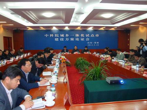 11日下午,召开了中科院城乡一体化试点市建设方案论证会。会上荣成市介绍了城乡一体化建设现状及共建城乡一体化试点市实施意见,山东省科技厅副厅长、中科院山东中心主任王晓斌作了题为“荣成城乡一体化建设调研报告以及开展试点示范工作的思考和建议”的报告,介绍了选择荣成作为试点市的背景和优势,突出以“信息化促进城镇化”为主线,加快实现生产和生活方式的转变。与会代表从技术、商业模式、政策、人文等不同角度就荣成市的城乡一体化建设提出建议,并就实施方案进行讨论。