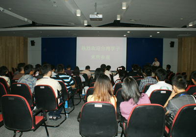 在生物楼学术报告厅,副所长冯埃生首先向前来参观的同学们表示热烈的欢迎,同时希望通过此项活动增进彼此之间的交流,使台湾学子加深对祖国大陆科研工作及其他各方面工作的了解,并寄望海峡两岸的青年学子携起手来,共同为中华民族的繁荣富强贡献出自己的力量。随后,同学们观看了我所简介专题片。