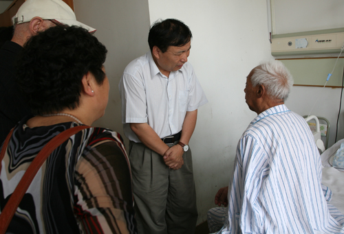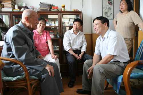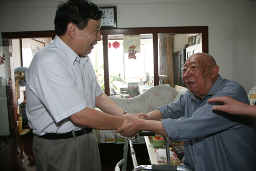 党委书记王启尧带队,离休党支部、退休党支部、工会、离退办等同志一行先后到病重、年事高、家庭困难的7位离退休老党员家中,了解老党员们的身体状况和生活情况,叮嘱老同志们一定要注意身体健康,安度晚年生活。在老红军白学光同志家中,已经98岁高龄的白学光同志拉着王启尧书记的手高兴的说:“感谢党的关心和照顾,感谢所党委……”。