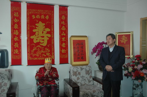 2012年4月6日是离休老红军、沈阳分院原党组书记丁岩同志百岁寿辰,沈阳分院为丁岩同志举行了百岁寿诞庆?;?。当天上午,分院党组书记、副院长马思,院长助理王瑞芬,分院机关离退休老同志代表及丁岩同志的亲朋好友参加了庆?;?。院离退休干部工作局和沈阳分院等为丁岩同志百岁寿辰敬送了花篮以示祝贺。与会人员齐唱祝你生日快乐并纷纷与丁岩同志握手照相,对丁岩同志百岁寿诞表达了美好的祝愿。
