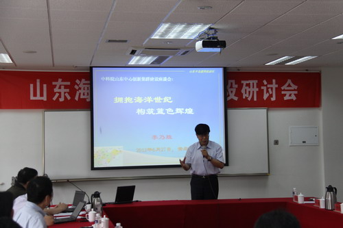 2012年6月27日,由中科院沈阳分院主办,中科院山东中心和中科院海洋所共同承办的“山东海洋区域创新集群建设研讨会”在青岛召开。山东省科技厅副厅长、青岛国家海洋科学研究中心主任李乃胜,沈阳分院副院长韩恩厚、马越红,中科院沈阳自动化所、海洋所、青岛生物能源与过程所、烟台海岸带所、声学所北海站、青岛光电院、兰化所青岛研发中心、软件所青岛分所、计算所烟台分所、山东中心的主管领导和相关人员参加了此次研讨会。