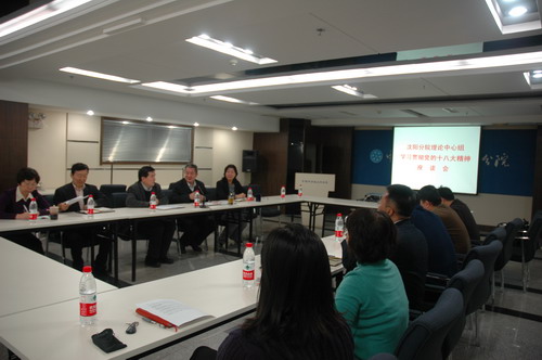 11月26日,沈阳分院党组召开中心组学习(扩大)会议,深入学习贯彻党的十八大精神,沈阳分院院长包信和、党组书记、副院长马思、副院长韩恩厚、马越红和分院处级干部参加了学习。