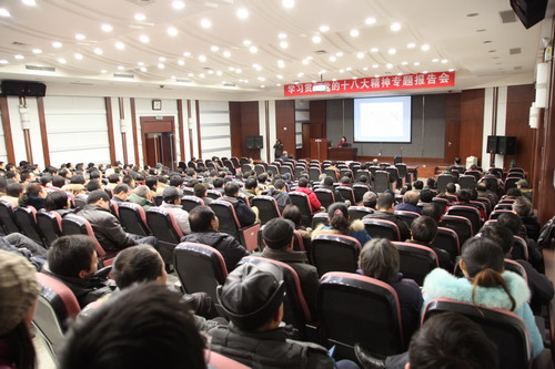 姜晓秋以图文声并茂的形式分别从科学发展观的历史地位、夺取中国特色社会主义新胜利、中国特色社会主义总体布局、建设中国特色社会主义事业的领导核心等四个方面深刻阐述了对党的十八大精神的理解,使分院系统广大科技人员深刻领会了党的十八大是在我国全面建成小康社会的关键阶段和世界形势发生复杂而深刻变化的情况下召开的一次十分重要的会议。这是一次高举旗帜、凝聚力量,与时俱进、勇于创新,继往开来、团结奋进的大会。大会确立了科学发展观作为党的指导思想,成功实现了领导层的新老交替,深刻回答了举什么旗,走什么路,朝着什么目标走,怎么走和用什么精神状态走等重大战略问题。大家普遍反映姜晓秋的报告内容丰富精彩、通俗易懂,收获良多。