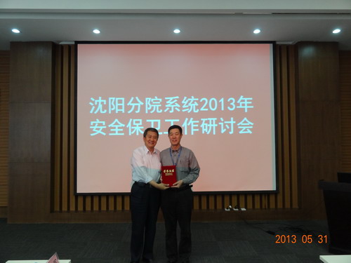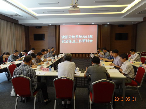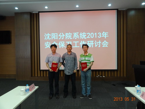 2013年5月31日,沈阳分院在大连化物所召开了分院系统2013年安全保卫工作研讨会,沈阳分院党组书记、副院长马思,院办公厅安保处处长谢凤臣以及沈阳分院系统8个单位的安保负责人和安全主管共24名同志参加了会议。