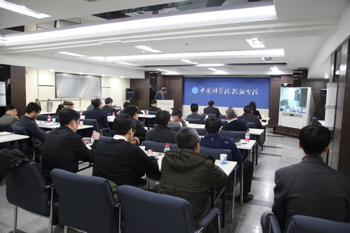 1月23日上午,沈阳分院召开党的群众路线教育实践活动总结会议。沈阳分院党的群众路线教育实践活动领导小组组长、沈阳分院党组书记、副院长马思主持会议并作总结报告,院督导组副组长、督导一组组长郭建军出席会议并讲话,分院党组成员、沈阳地区各单位领导班子成员、党办主任及分院机关职工等参加会议?;嵋樵诜衷夯厣柚骰岢?,外地的4个研究所设分会场。