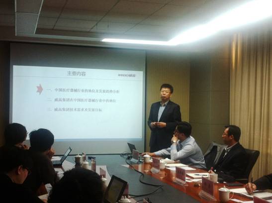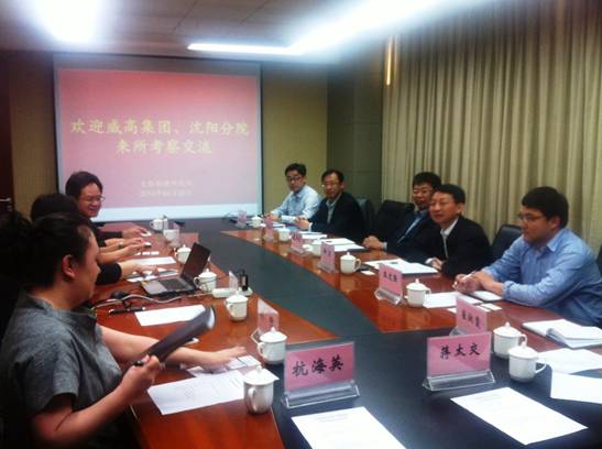 2014年4月28日,山东威高集团张华威总裁一行在沈阳分院院长助理、山东中心主任徐岩的陪同下到中科院生物物理所调研,寻求战略合作。中科院生物物理所党委书记、副所长汪洪岩,所长助理毕利军,科技合作与成果转化处、科学技术处的负责人以及相关实验室的负责人和研究人员20余人参加了交流座谈。