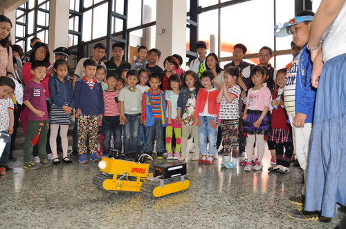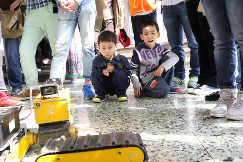 在沈阳自动化研究所,学生们和社会公众分批次参观了科技成果展室和水下条件实验室。参观过程中,来自所青年志愿者协会的志愿者们为参观者们生动详细地讲解了旋翼无人机、极地冰雪面移动机器人、“灵豹”反恐防暴机器人、胶囊内窥镜机器人、空间遥操作与机器人技术、废墟搜救机器人、北极ARV、水下滑翔机等一批沈阳自动化所机器人研究成果,并观看了蛇形机器人等类仿生机器人的现场操作演示。所到之处,各个年龄段的科技迷们将志愿者们团团围住,认真聆听讲解,并不时提问互动,气氛热烈,志愿者们耐心细致的讲解令参观者们受益良多。