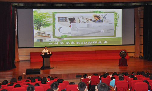 赵辰阳以电影“十二生肖”中的精彩片段作为开场,以生动的比喻、有趣的实例、精美的视频向小学生们介绍了目前十分“火爆”的前沿技术——3D打印是如何打造真实的“神笔马良”。赵博士为学生们详细介绍了什么是3D打印机、3D打印机怎么用、用在哪儿,还以3D打印机的发明者Hull教授为例,鼓励同学们从生活中的小细节出发,认真观察,勤于思考,努力实践,始终保持一颗对科学的好奇之心。